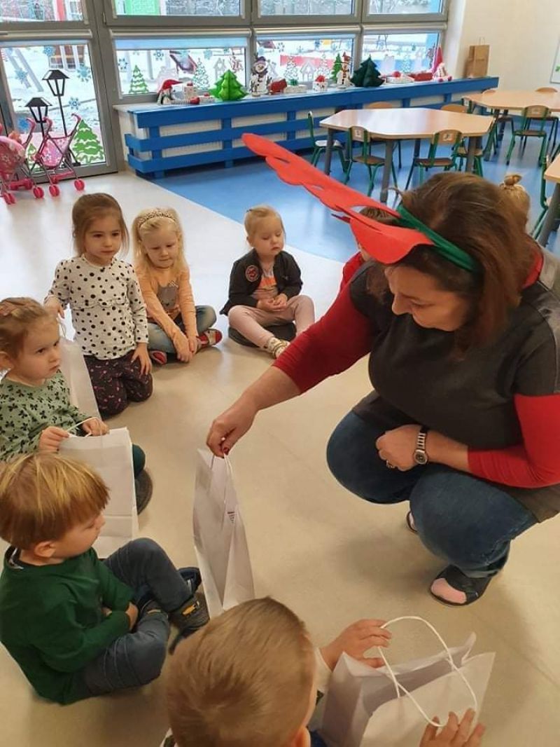 Wizyta Mikołaja dopiero przed nami, ale już dziś, w Mikołajki, odwiedził nas jego pomocnik - "renifer", który wręczył dzieciom drobne prezenty, wywołując uśmiechy na ich twarzach. Naszym "Mikołajem" był Pan wójt Paweł Kownacki.