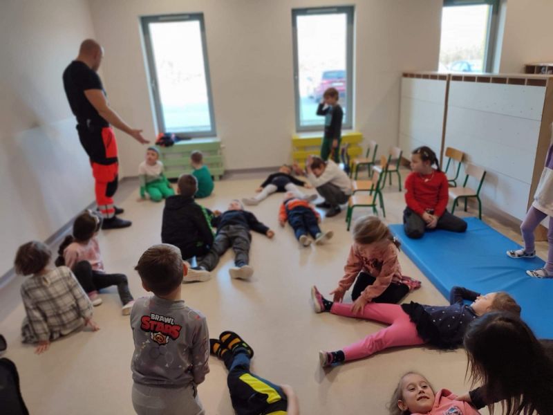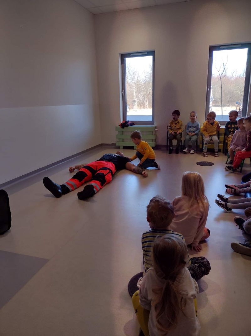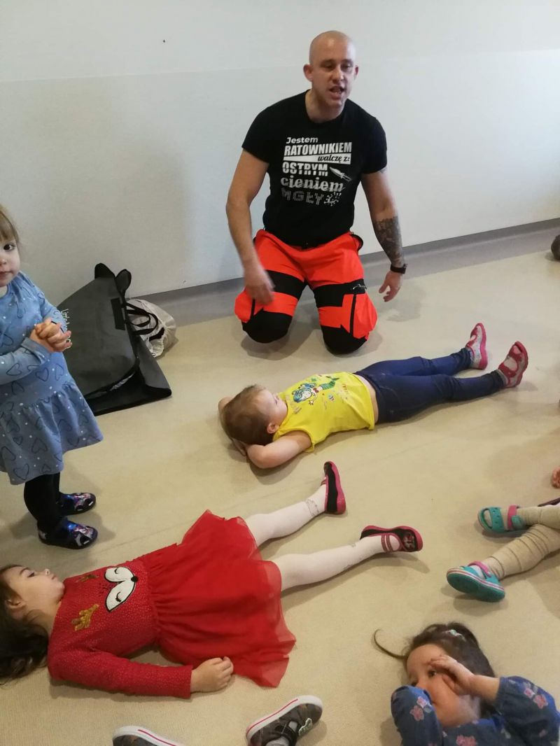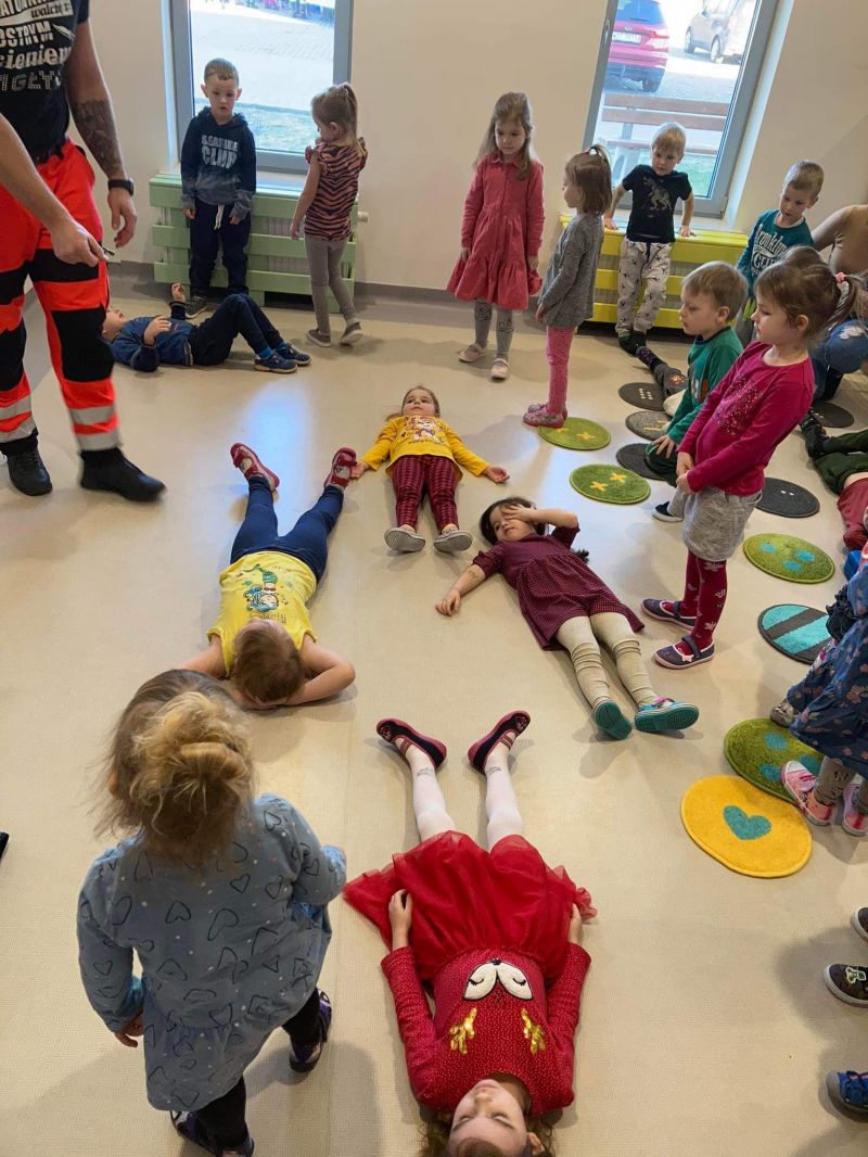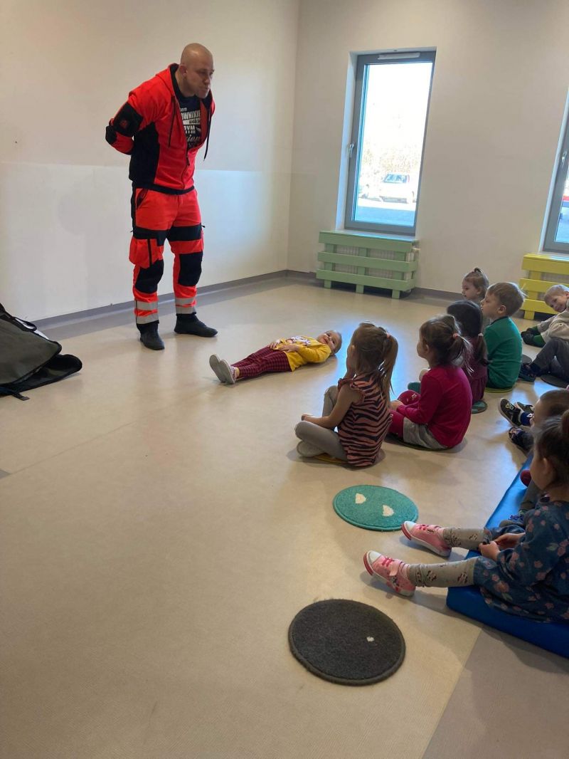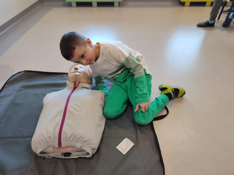 Dziś nasze przedszkole wzięło udział w bardzo przydatnym wydarzeniu - warsztaty z pierwszej pomocy "Nie bój się pomóc". Warsztaty miały na celu przybliżyć dzieciom pracę ratownika medycznego, przypomnieć dobrze już znane numery alarmowe, a także zaprezentować dzieciom zachowania i czynności, które mogą uratować czyjeś życie - jak postępować w przypadku osoby nieprzytomnej, jak ułożyć poszkodowanego w pozycji bezpiecznej, a także jak wykonać masaż serca.