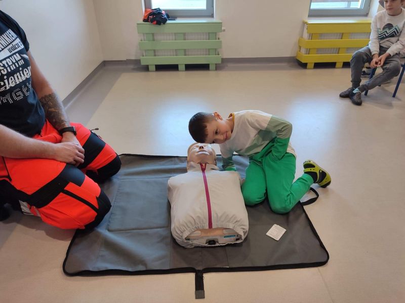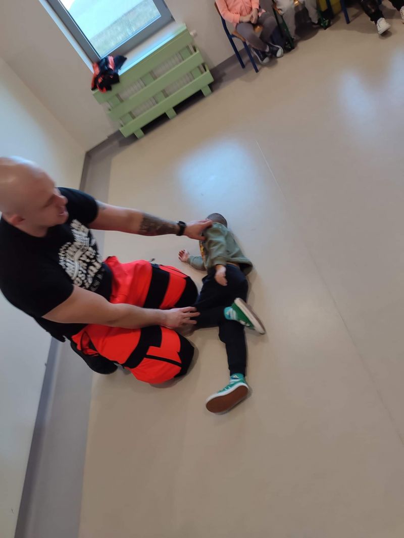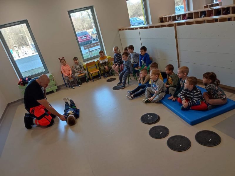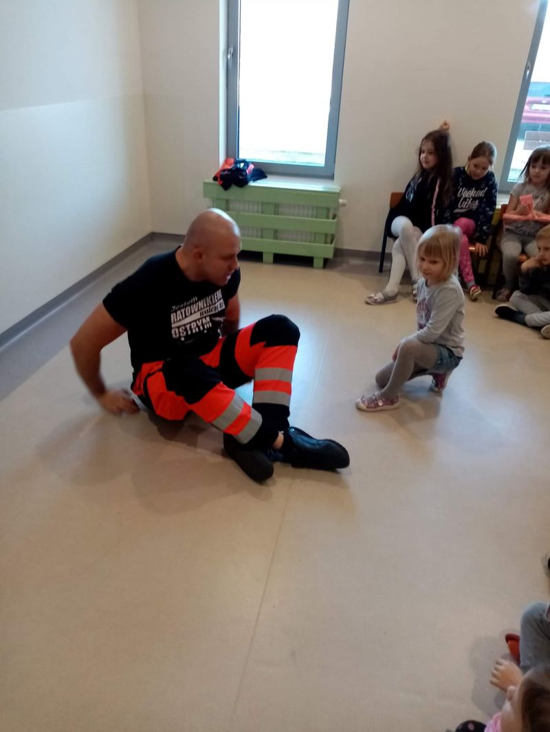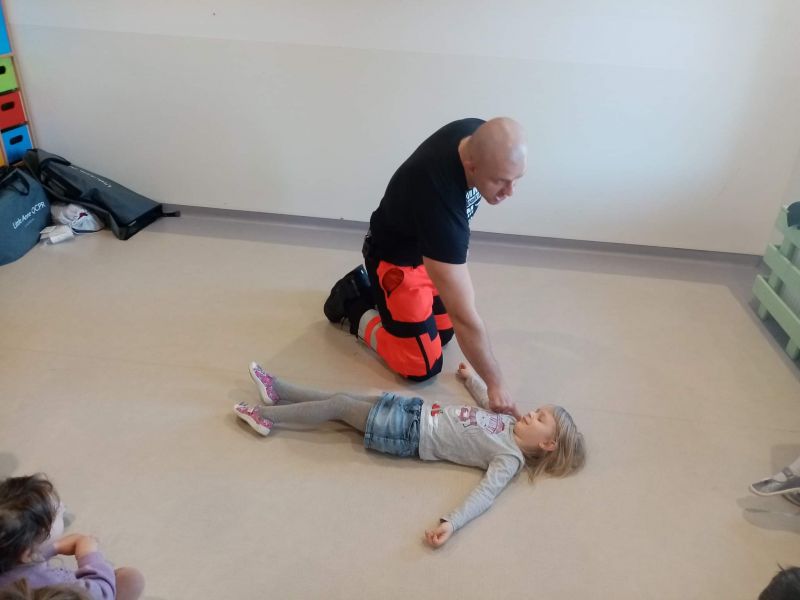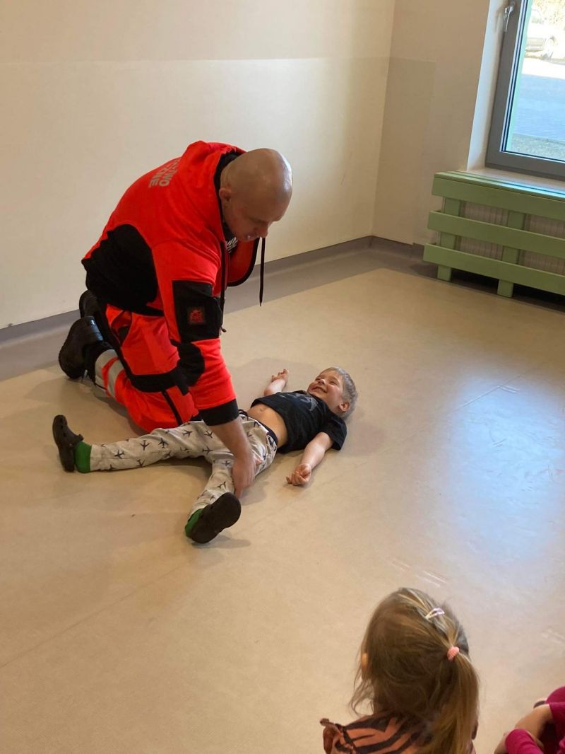 Dziś nasze przedszkole wzięło udział w bardzo przydatnym wydarzeniu - warsztaty z pierwszej pomocy "Nie bój się pomóc". Warsztaty miały na celu przybliżyć dzieciom pracę ratownika medycznego, przypomnieć dobrze już znane numery alarmowe, a także zaprezentować dzieciom zachowania i czynności, które mogą uratować czyjeś życie - jak postępować w przypadku osoby nieprzytomnej, jak ułożyć poszkodowanego w pozycji bezpiecznej, a także jak wykonać masaż serca.