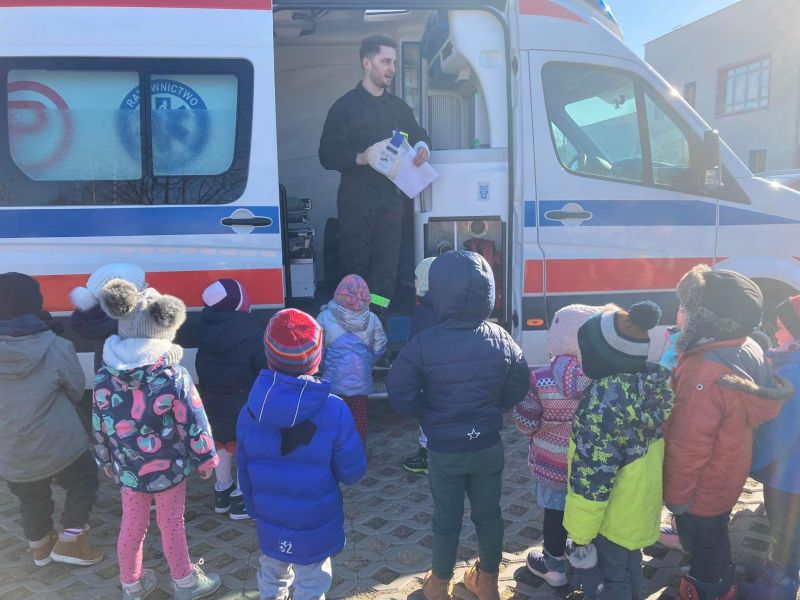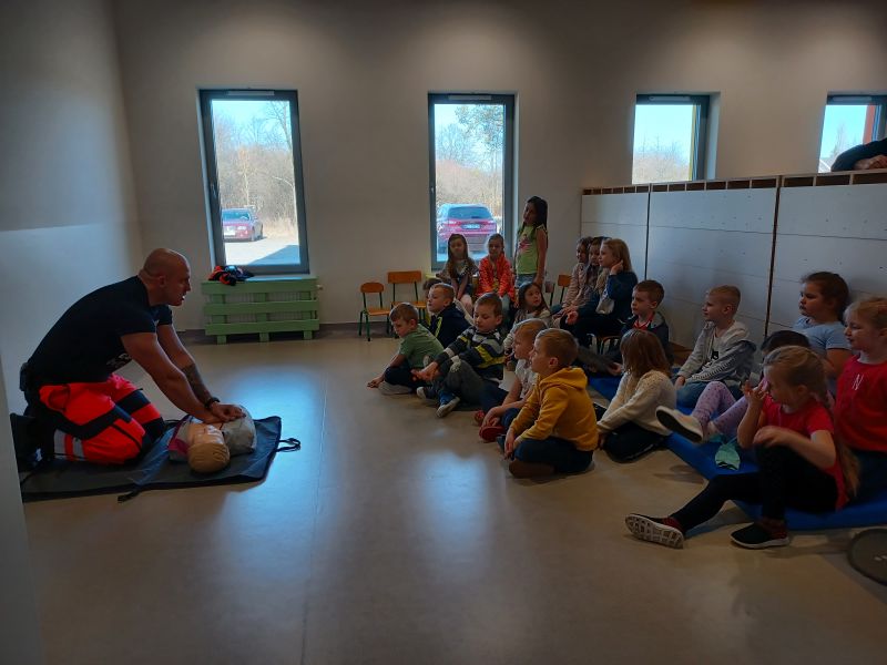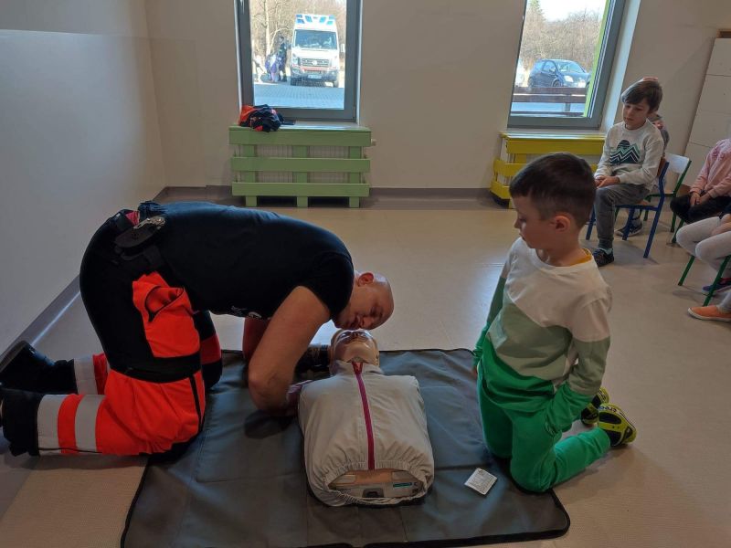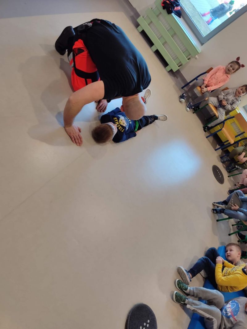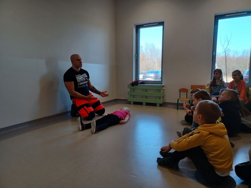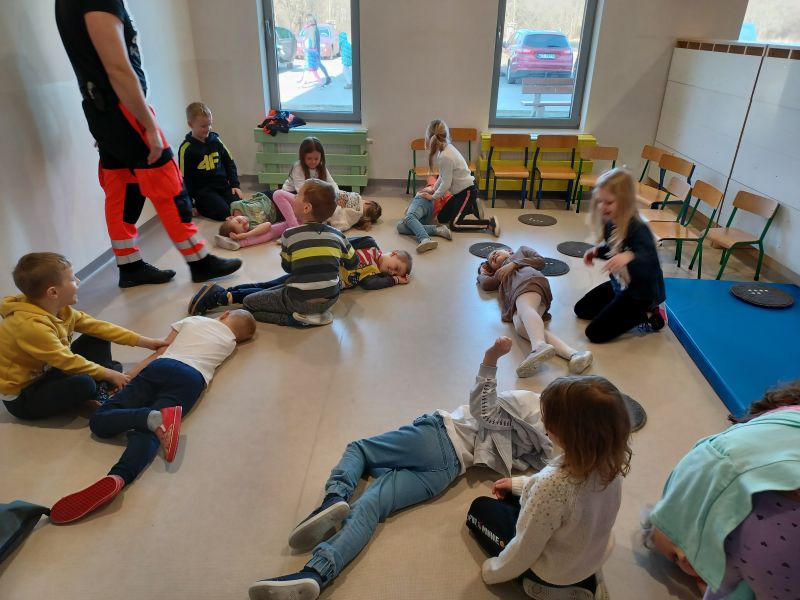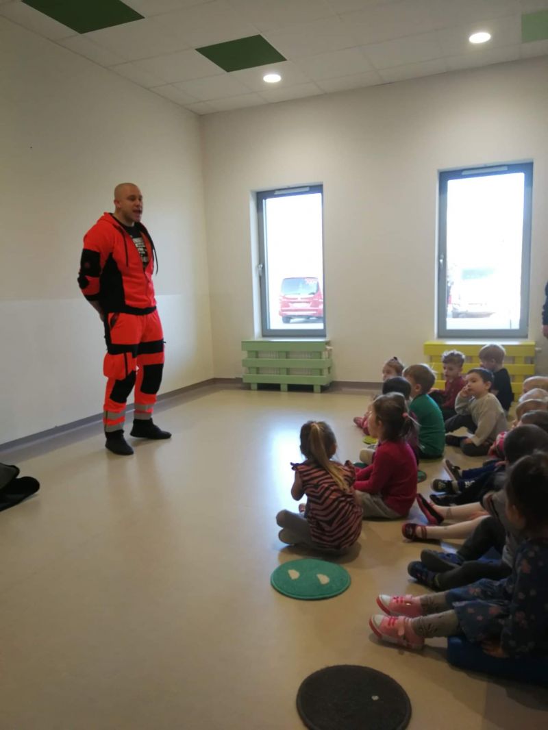 Dziś nasze przedszkole wzięło udział w bardzo przydatnym wydarzeniu - warsztaty z pierwszej pomocy "Nie bój się pomóc". Warsztaty miały na celu przybliżyć dzieciom pracę ratownika medycznego, przypomnieć dobrze już znane numery alarmowe, a także zaprezentować dzieciom zachowania i czynności, które mogą uratować czyjeś życie - jak postępować w przypadku osoby nieprzytomnej, jak ułożyć poszkodowanego w pozycji bezpiecznej, a także jak wykonać masaż serca.