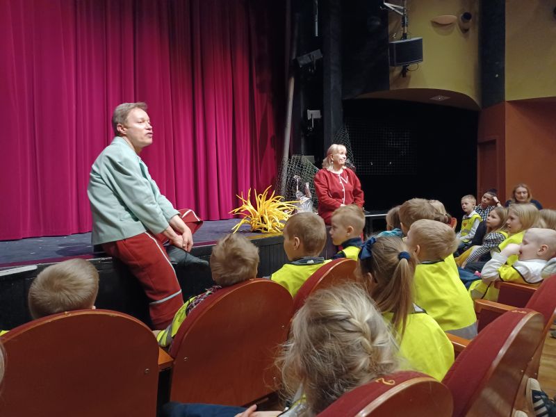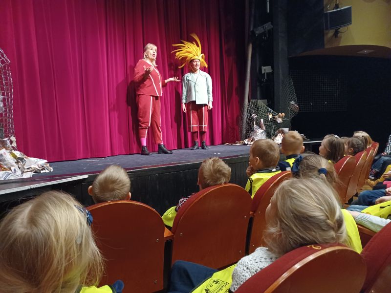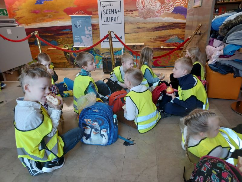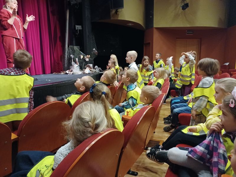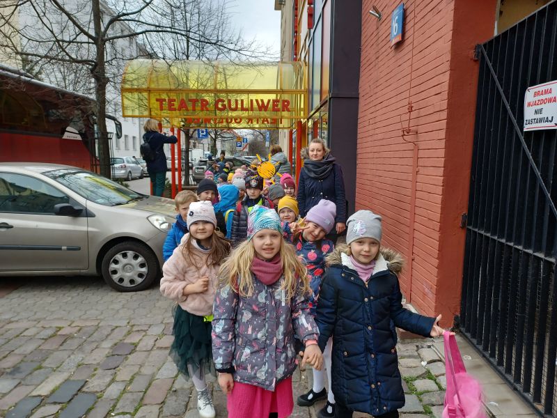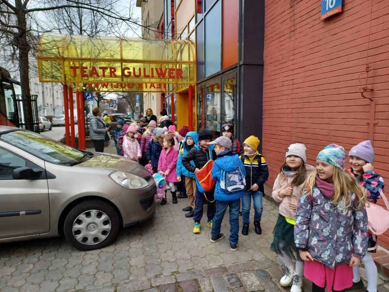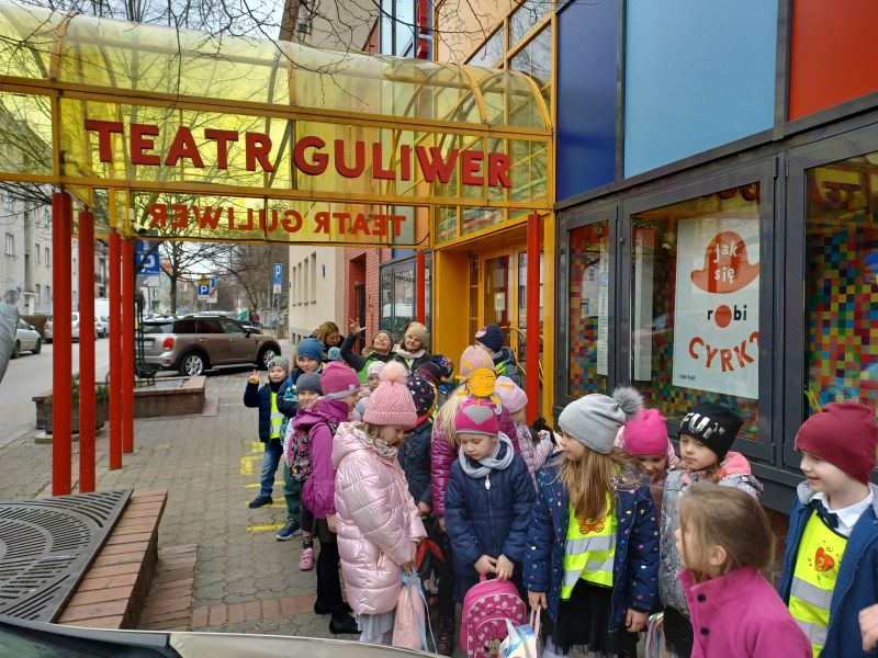 29 i 31 marca przedszkolaki z grup "Zajączki", "Biedronki", "Żabki", "Wiewiórki", "Sówki" oraz "Liski" odwiedziły warszawski Teatr Lalek Guliwer. Podczas lekcji teatralnych dzieci dowiedziały się jak wiele osób pracuje nad tym, aby powstał teatr - kostiumolog, scenarzysta, rekwizytor, akustyk, kompozytor, reżyser, oświetleniowiec, aktor i jeszcze wiele, wiele innych osób, a także, że każdy z nas ma jakiś wyjątkowy talent. Sam spektakl zabrał nas w świat wyobraźni, było to wyjątkowe widowisko. Dzieci zobaczyły na arenie konie, trójwymiarowe ryby i kukiełki. W nowoczesne animacje zostały wplecione stare triki cyrkowe. Dzieci wróciły zmęczone ale i bardzo zachwycone, zresztą nie tylko dzieci.