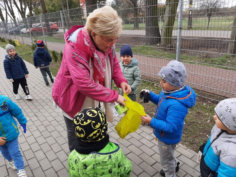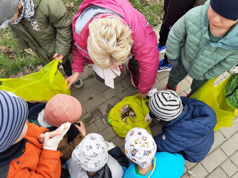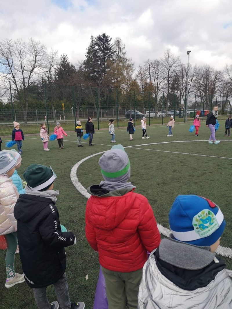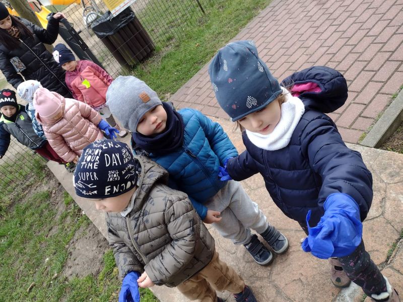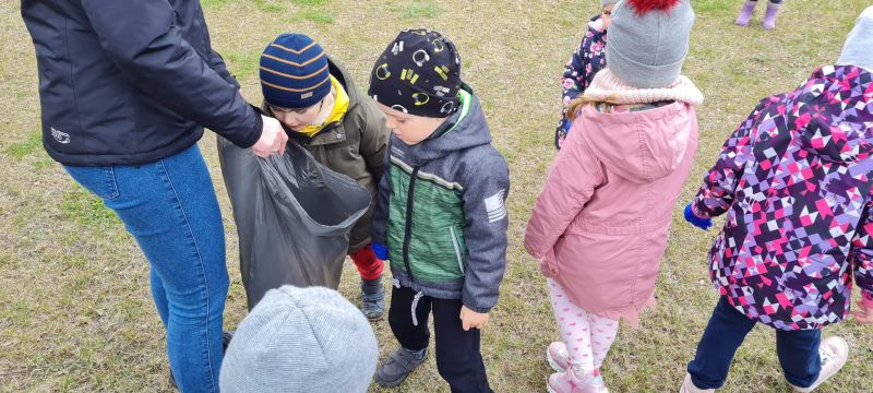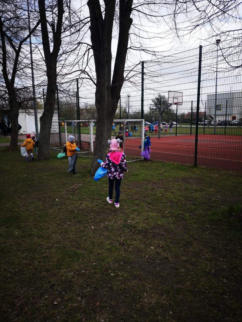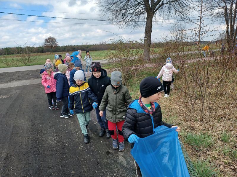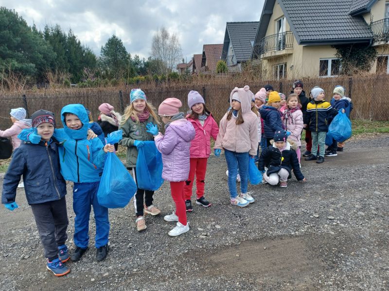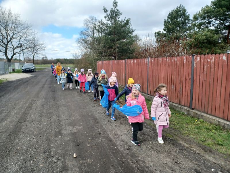 Światowy Dzień Ziemi dzieci świętowały radośnie. W czasie zajęć dydaktycznych przedszkolaki przypomniały sobie zdobyte już wcześniej informację ma temat ekologii - jak należy dbać o naszą planetę, na czym polega segregacja odpadów oraz zapoznały się z bardzo trudnym pojęciem recykling. Po krótkim wstępie dzieci wyruszyły na boisko, aby wspólnie zaśpiewać i zatańczyć "Eko Pingwinka", a następnie ruszyły na wielkie sprzątanie Ziemi. Najmłodsi dzielnie porządkowali teren wokół przedszkola, starszaki nazbierały góry śmieci idąc wzdłuż drogi. Każdy chętnie włączył się w akcję, łącząc przyjemne z pożytecznym. Na koniec zaśpiewaliśmy "Sto lat" dla Ziemi!