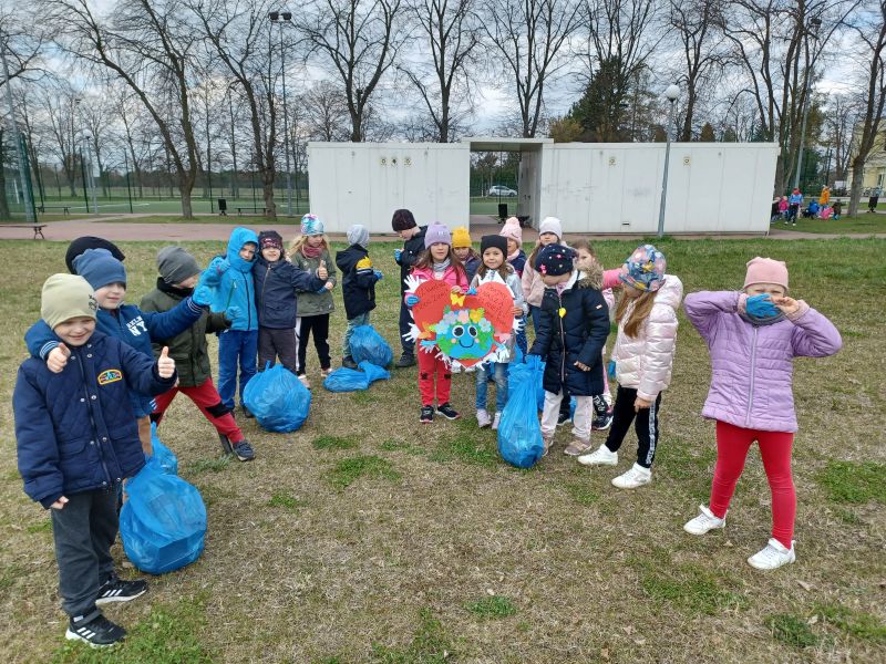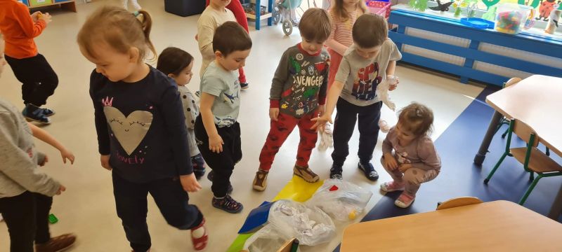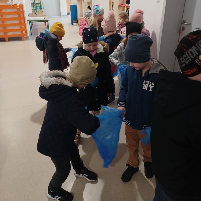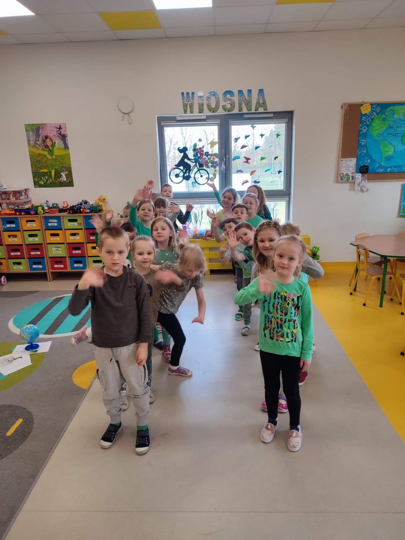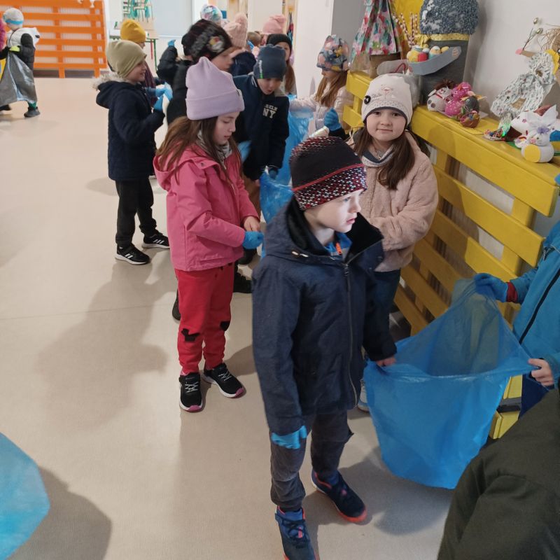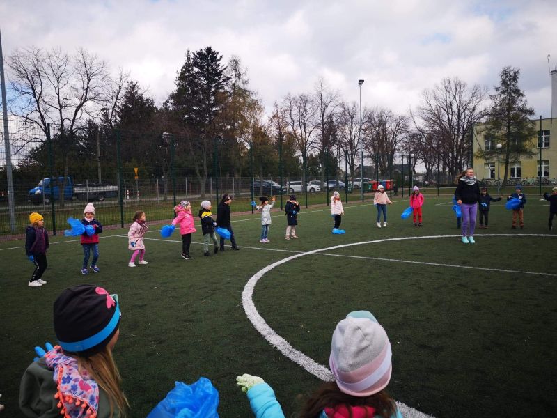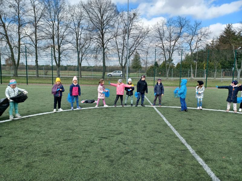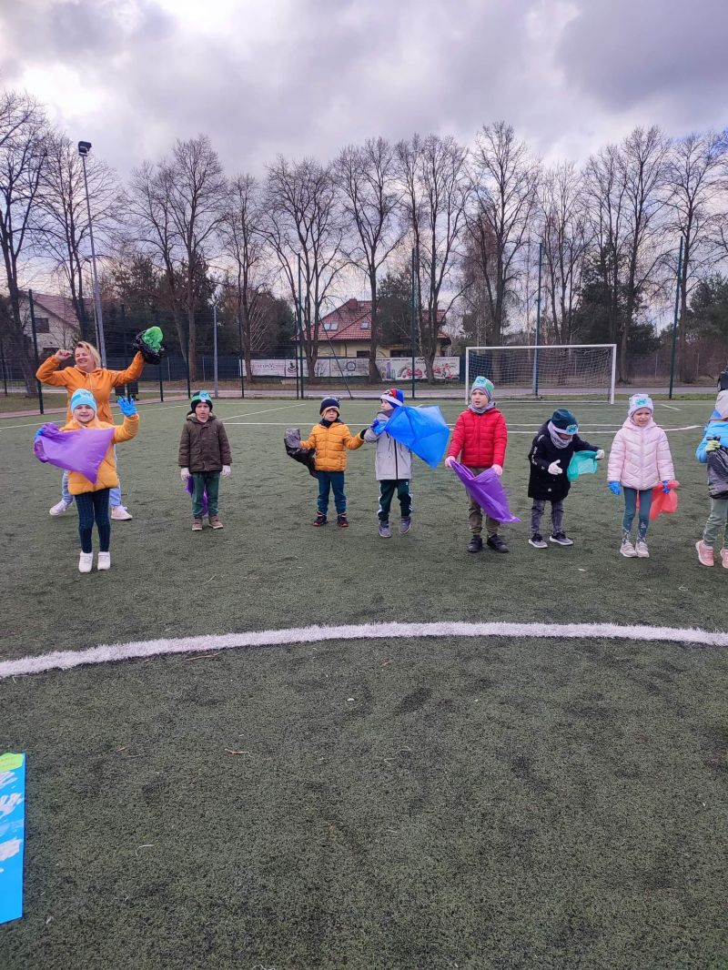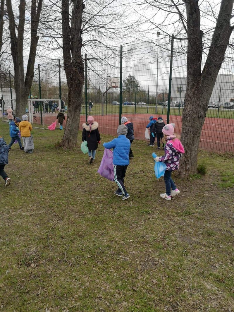 Światowy Dzień Ziemi dzieci świętowały radośnie. W czasie zajęć dydaktycznych przedszkolaki przypomniały sobie zdobyte już wcześniej informację ma temat ekologii - jak należy dbać o naszą planetę, na czym polega segregacja odpadów oraz zapoznały się z bardzo trudnym pojęciem recykling. Po krótkim wstępie dzieci wyruszyły na boisko, aby wspólnie zaśpiewać i zatańczyć "Eko Pingwinka", a następnie ruszyły na wielkie sprzątanie Ziemi. Najmłodsi dzielnie porządkowali teren wokół przedszkola, starszaki nazbierały góry śmieci idąc wzdłuż drogi. Każdy chętnie włączył się w akcję, łącząc przyjemne z pożytecznym. Na koniec zaśpiewaliśmy "Sto lat" dla Ziemi!