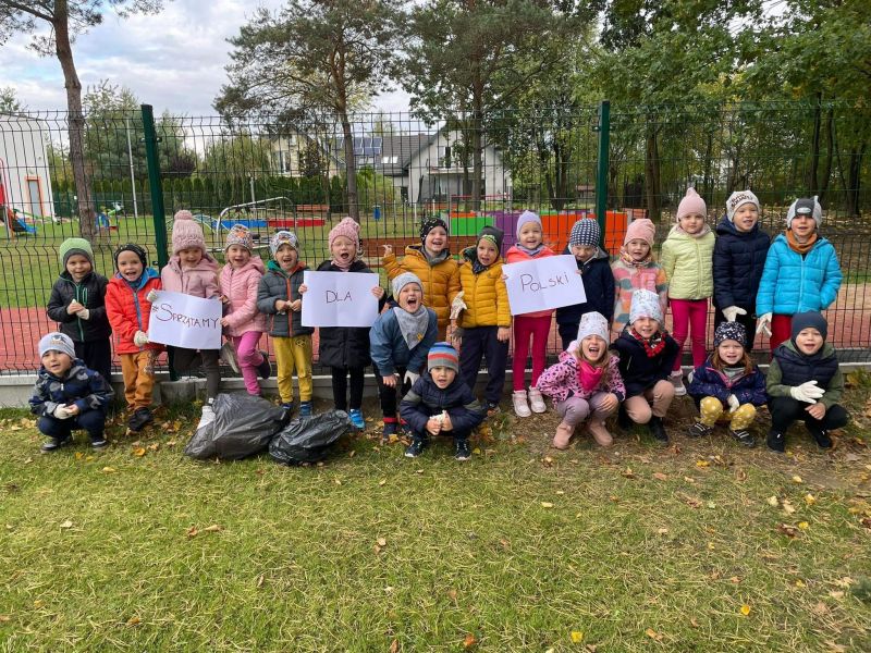 Nasze przedszkole wzięło dziś udział w IV edycji akcji #Sprzątamy dla Polski pod honorowym patronatem Prezesa Rady Ministrów Mateusza Morawieckiego. Wszyscy bardzo mocno zaangażowali się w akcje. Podczas zajęć dzieci przypomiały sobie jak prawidłowo segregować odpady, a także zostały poinstruowane odnośnie bezpieczeństwa w czasie sprzątania wyznaczonych miejsc. Każde dziecko otrzymało rękawice oraz worki foliowe i z wielką energią przystąpiliśmy do sprzątania. Wszystkie znalezione papierki, butelki i inne śmieci, z uśmiechem trafiały do worków.