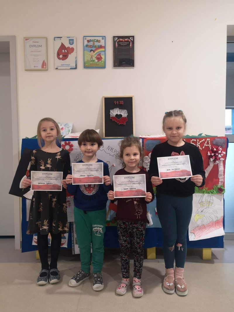 W naszym przedszkolu odbył się konkurs upamiętniający odzyskanie przez Polskę Niepodległości. Konkurs był skierowany do dzieci w wieku 5 i 6 lat. Wszystkie prace konkursowe były pomysłowe i estetycznie wykonane. Szczególne znaczenie ma okazany przez uczestników szacunek i pamięć dla osób walczących o wolność Polaków.