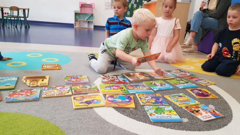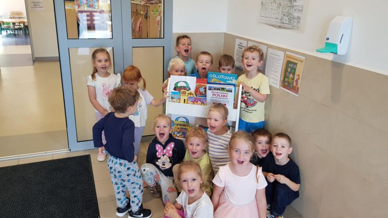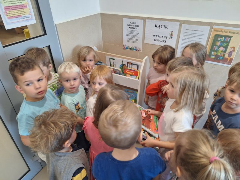 W ramach akcji " Niepotrzebna ksiazka"dzieci przynoszą do półki wymiankowej książeczki które już są niepotrzebne.