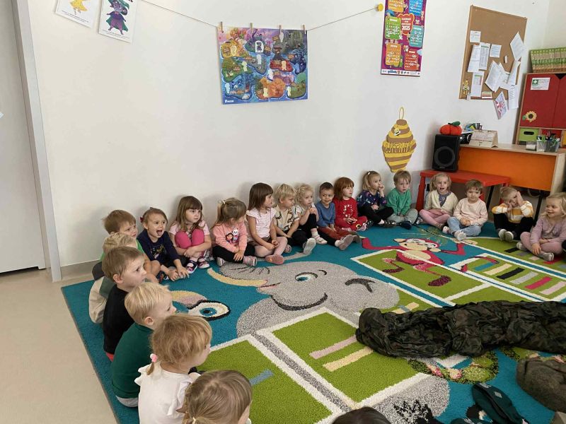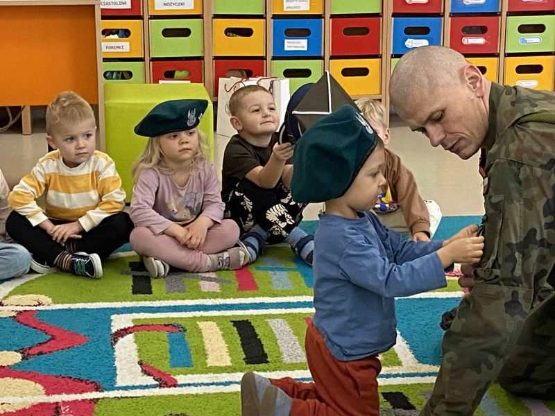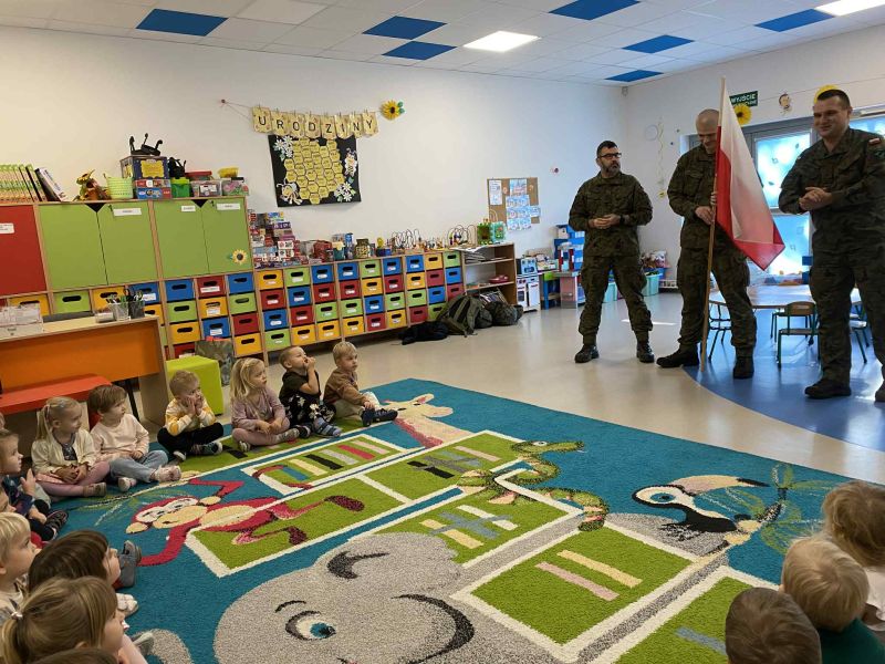W dniu 3.11, w związku ze zbliżającym się Dniem Niepodleglosci, grupę Pszczółki odwiedzili żołnierze. Dzieci dowiedziały się jak wygląda dzień żołnierza, jakich przyborów używa w pracy oraz poznały żołnierski ubiór.