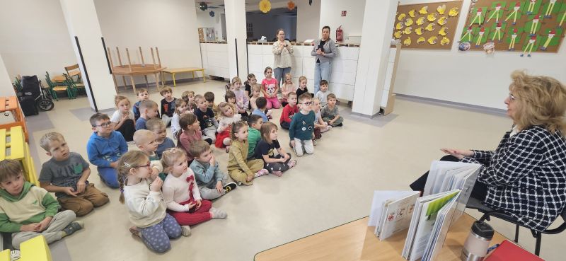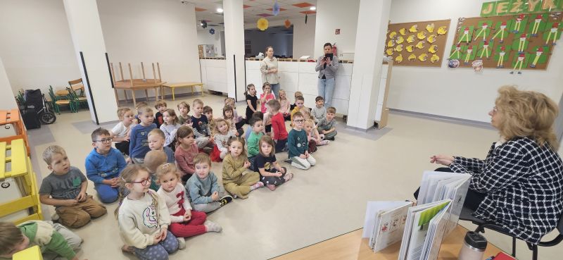 Spotkanie z autorką książek dla dzieci Panią Hanną Niewiadomską. - Przedszkole Samorządowe w Skrzeszewie