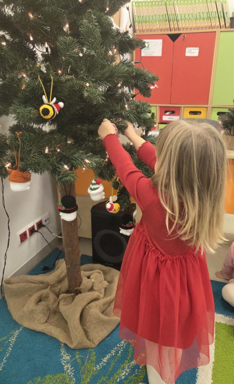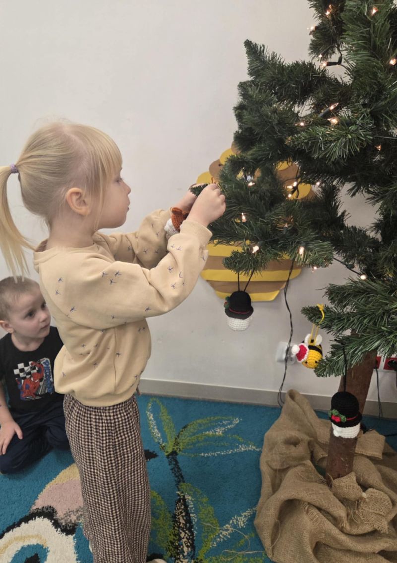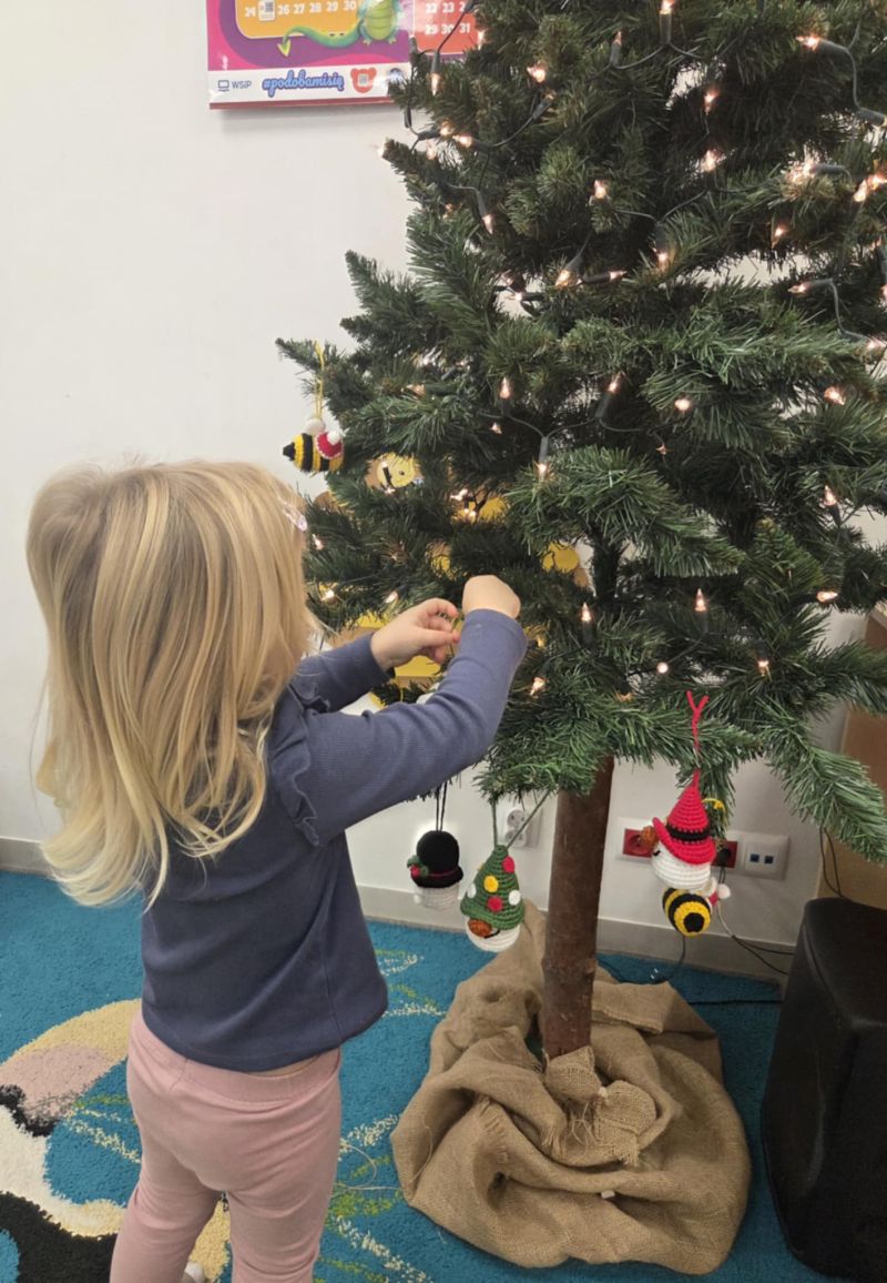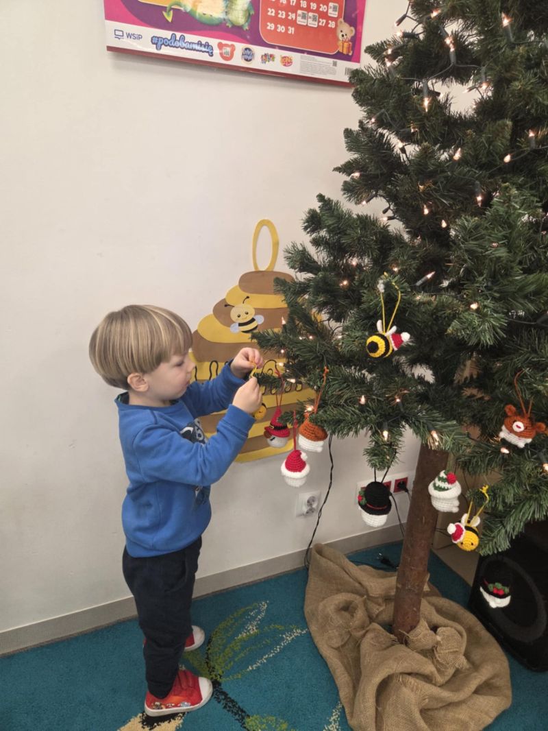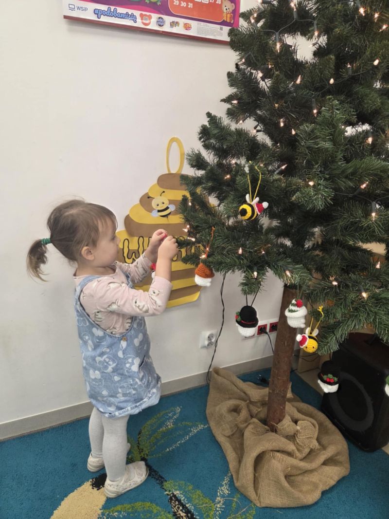 Pszczółki piszą Listy do Mikołaja i ubierają choinkę.