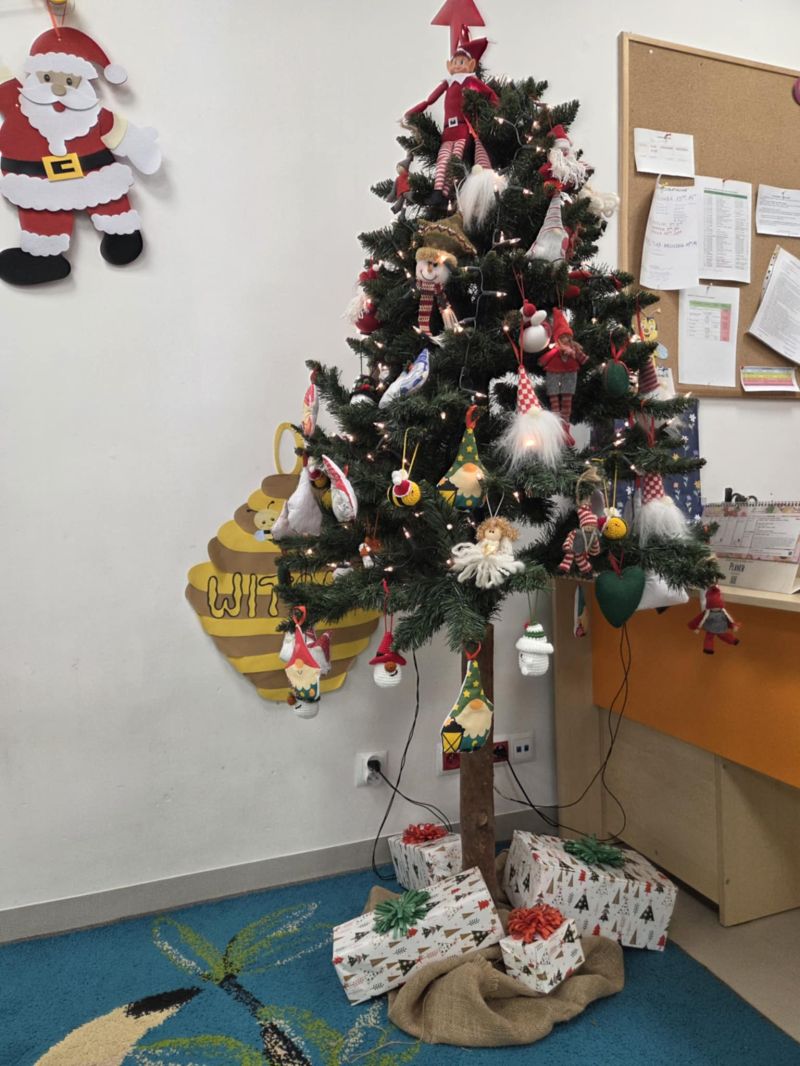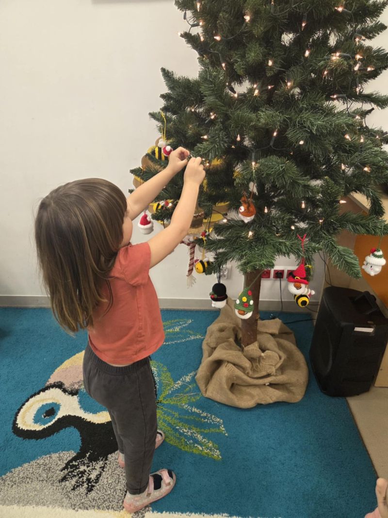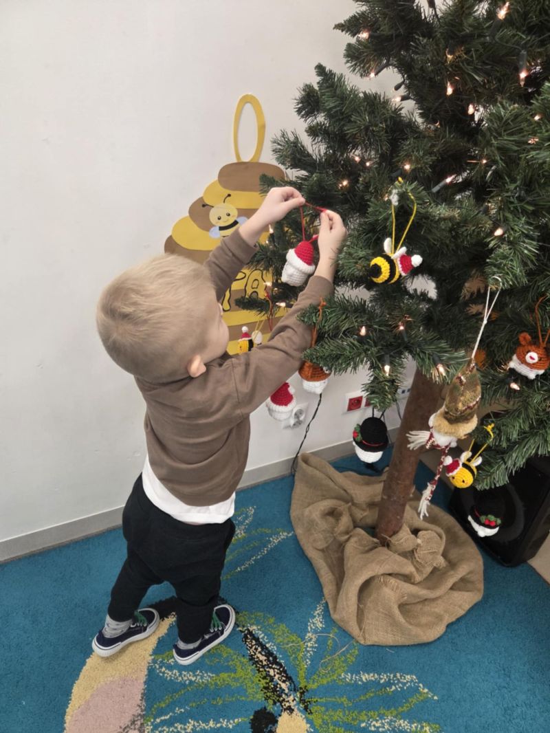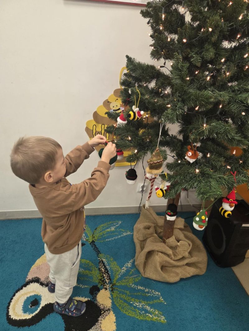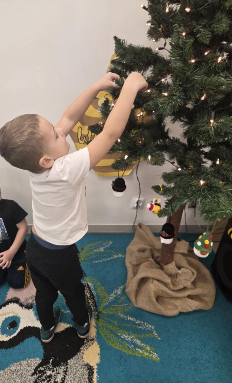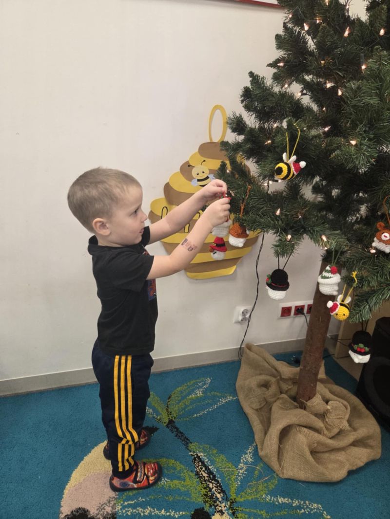 Pszczółki piszą Listy do Mikołaja i ubierają choinkę.